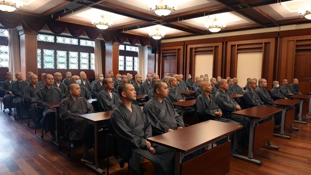 受杭州市佛教协会邀请,中国佛教协会副会长、北京大学教授湛如法师在杭州佛学院为杭州市佛教界作题为“百年精进 风雨同行——佛教在百年壮丽史诗中的爱国影像与记忆”的主题讲座,市属各寺院僧众及杭州佛学院全体师生参加。