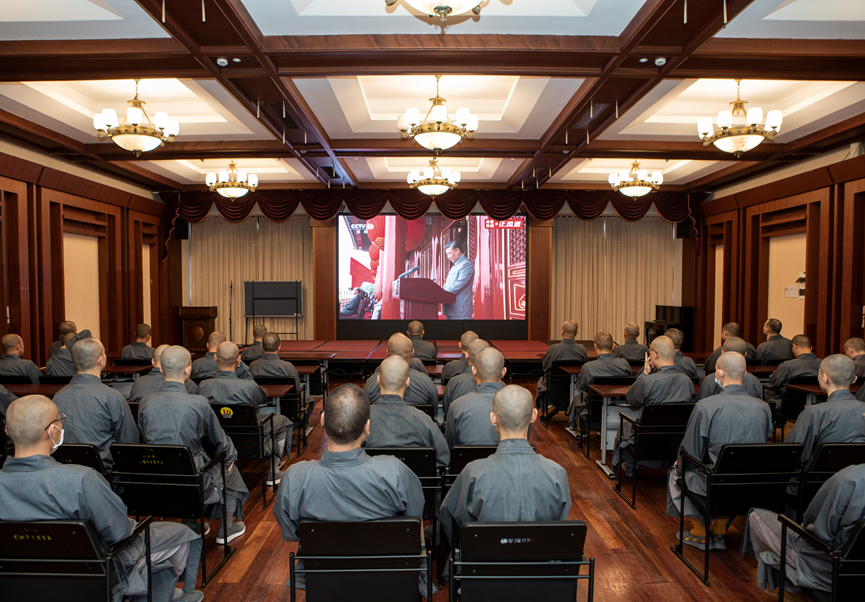全寺僧众通过观看“庆祝中国共产党成立100周年大会”直播,与全国各族人民一起,共同见证中国共产党的光辉历程,礼赞中国共产党的伟大成就。这次直播学习增进了大众对伟大祖国、中华民族、中华文化、中国共产党、中国特色社会主义的认同。法师们纷纷表示,中国共产党百年初心不改,一心一意为人民谋幸福,没有中国共产党,就没有今天我国佛教健康传承的良好局面和广大佛弟子的幸福生活。我们要坚定拥护党的领导,听从党的指挥,坚持走中国特色社会主义道路,在实际工作中加倍努力,在各自岗位上发光发热,为全面建设社会主义现代化国家,实现中华民族伟大复兴的中国梦添砖加瓦!