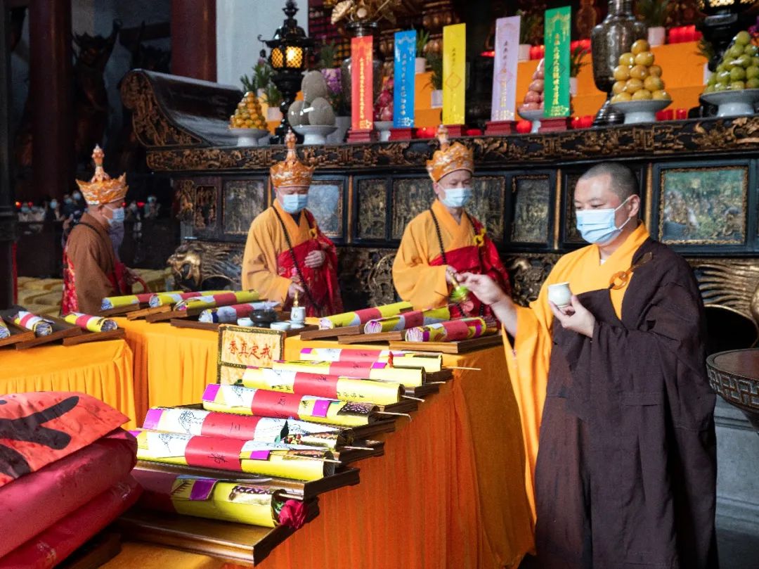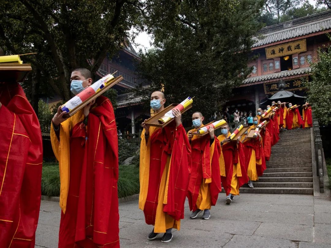 下午14时许,杭州灵隐寺辛丑法界圣凡水陆普度大斋胜会在殊胜吉祥的佛号声中功德圆满。