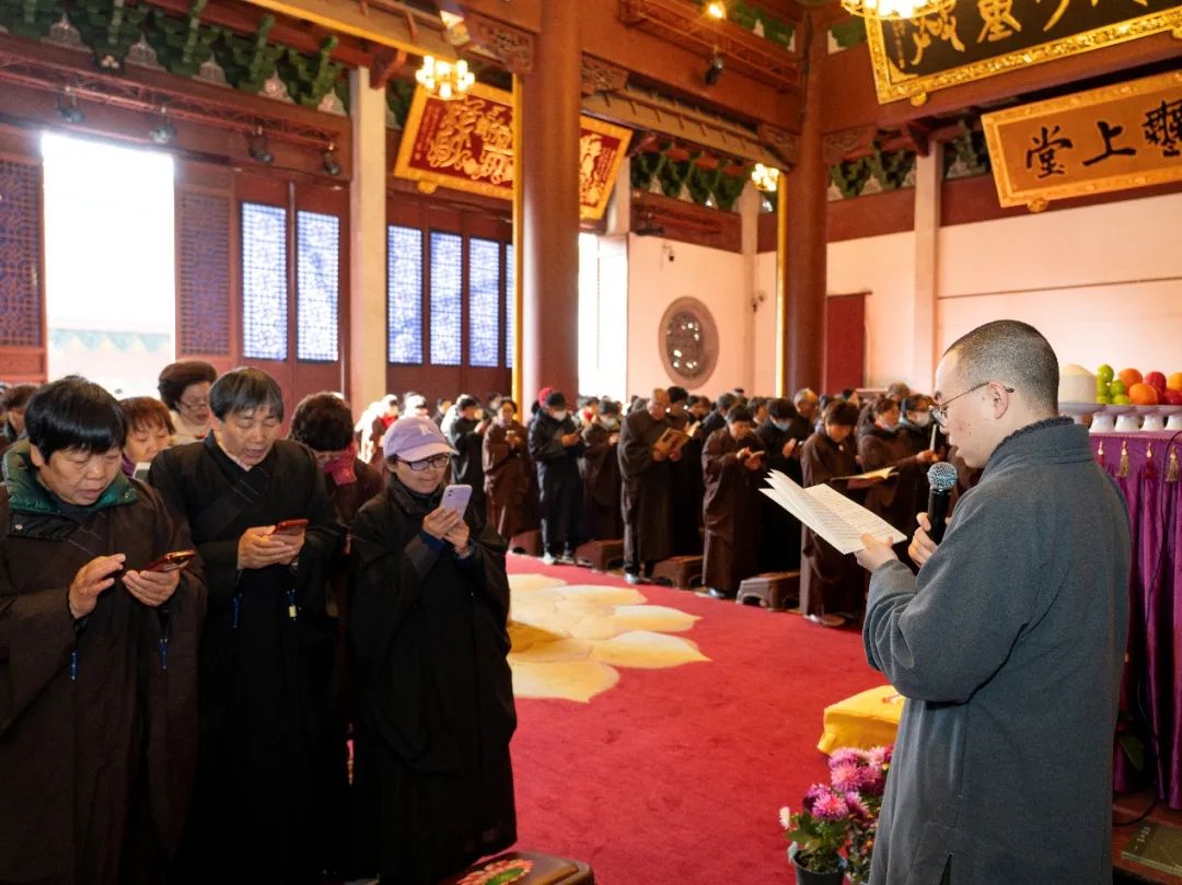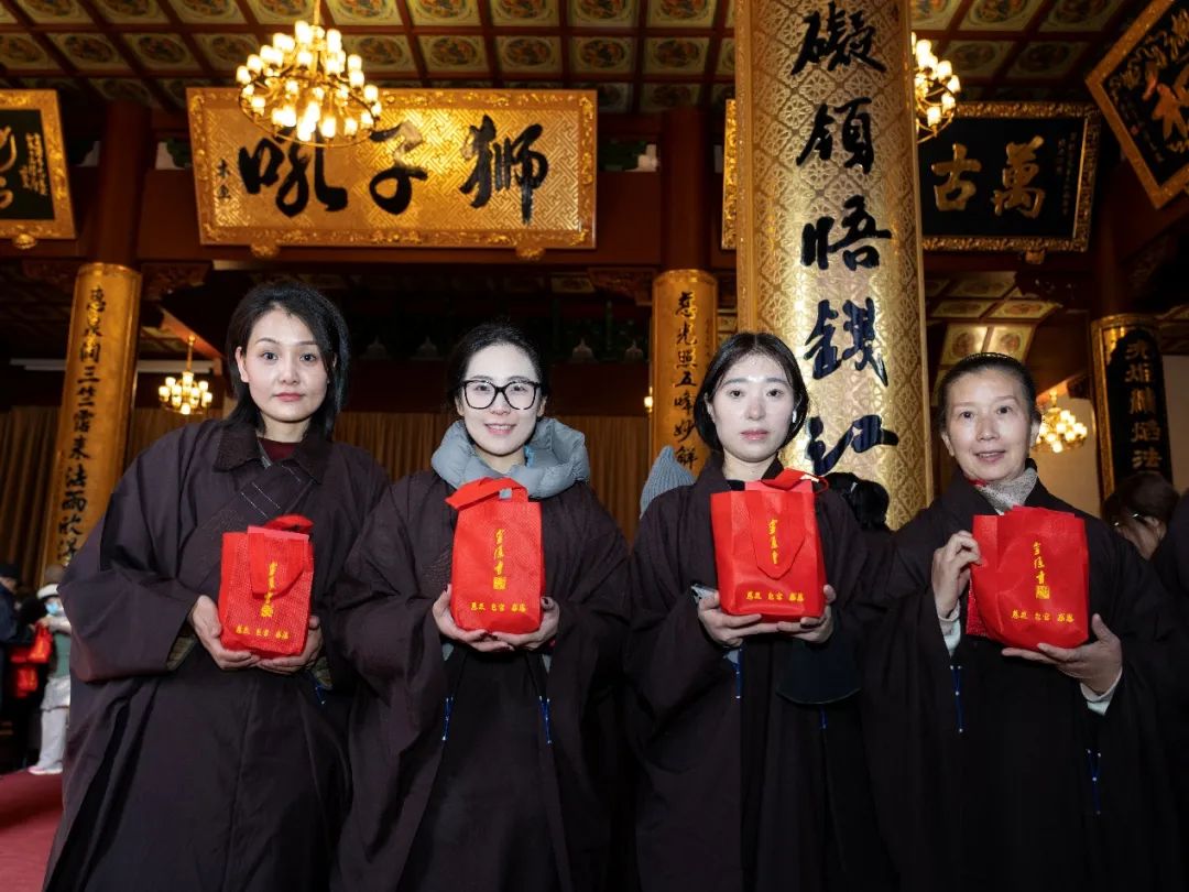 2月7日,乙巳正月初十,杭州灵隐寺举行新春团拜活动,方丈光泉大和尚为皈依居士作新春开示,大家互致新春问候,活动现场法喜充满。上午九时,各地赶来的皈依居士们集合于直指堂,在法师的带领下读诵《法华经观世音菩萨普门品》,感念三宝恩德,回向法界众生。光泉大和尚为各位居士送上新春祝福并慈悲开示。他说,过去一年中灵隐寺在讲经弘法、人才培养、公益慈善、国际交流等各方面均取得了长足进步,这些成绩离不开社会各界的大力支持,也少不了各位皈依居士的辛勤付出。2025年灵隐寺将持续推进殿堂修缮和硬件提升,大力开展弘法利生的各项活动,以期为广大善信提供更加庄严殊胜的修学平台,为经济社会发展和大众信心树立作出新的贡献。他叮嘱大家在生活中积极践行佛陀教诲,向《普门品》中寻声救苦的观世音菩萨学习,行愿兼资,悲智双运,护持三宝,利乐群生,不断积累菩提大道上的福慧资粮。善信居士们聆听了方丈和尚的慈悲开示,并领取了寺院为大家精心准备的礼品,纷纷表示欢喜信受,要将大和尚的开示和佛法的智慧落实到日常生活中,争取在道业上取得更大进步。