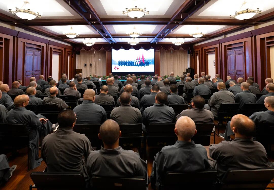 杭州灵隐寺组织全体僧众集体观看现场直播,共同见证这一铭记历史、缅怀先烈、珍爱和平、开创未来的伟大时刻。大家认真聆听习近平总书记的重要讲话,共同回顾中国人民抗日战争的艰辛历程与伟大胜利。受阅部队整齐划一的步伐、威武雄壮的阵列、英姿飒爽的将士,以及现代化武器装备的展示,不仅让全寺僧众深刻感受到祖国的强大和军队的威武,也进一步激发了大家的民族自豪感。