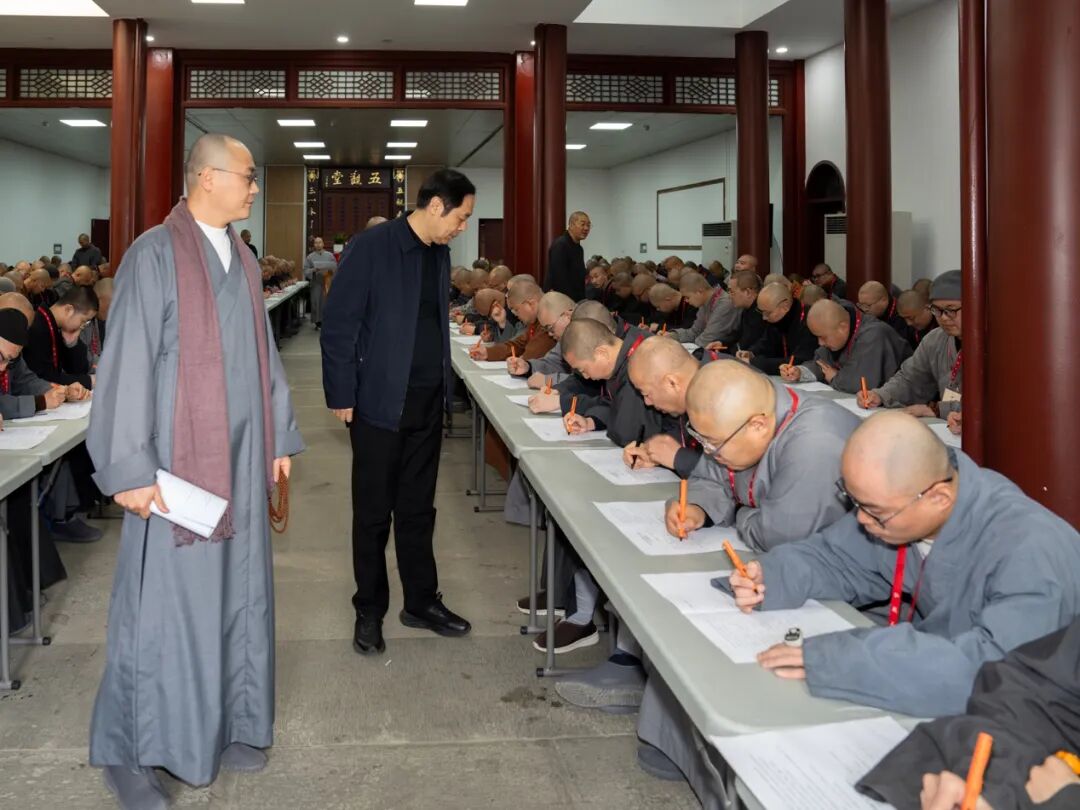10日上午,求戒弟子集中参加进堂前的笔试与面试考核。浙江省佛教协会秘书长黄年华与协会相关部门负责人等一行至灵隐寺,检查2026年杭州灵隐寺暨法镜讲寺传授二部僧三坛大戒法会的报到组织、安全保障等相关工作,并督导笔试面试工作。经笔试、面试考核通过后,全体求戒弟子正式开启受戒学修之旅。