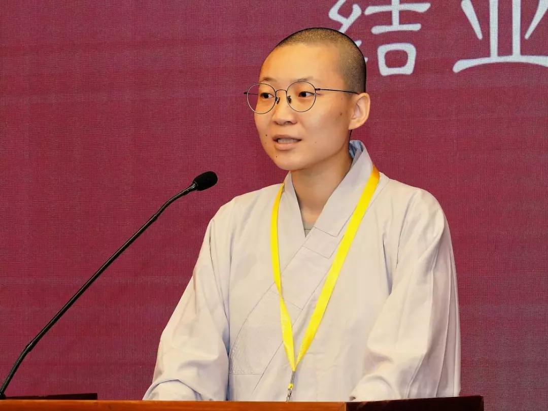 末学心觉来自无锡慈恩佛学院,接下来要与大家分享的是"浅谈普贤行愿品中的愿与行"。