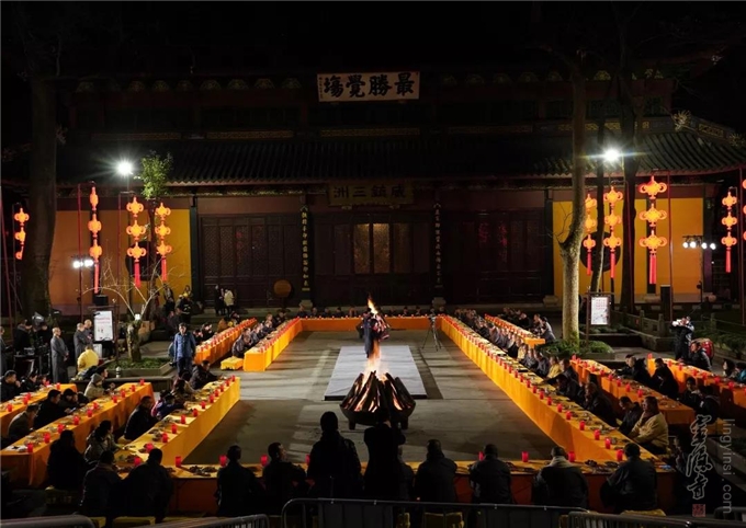 2019年2月2日晚上,杭州灵隐寺举行"辞旧迎新围炉普茶会"。灵隐寺常住法师、善信大德欢聚一堂,互致新春问候。祈愿大众以三宝为皈依,以智慧为明灯,以行愿为本怀,庄严国土,利乐有情,为建设温暖慈悲的人间佛教事业贡献力量。