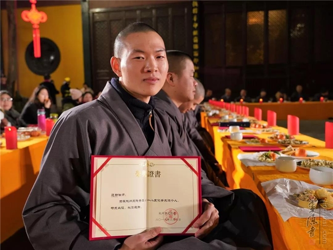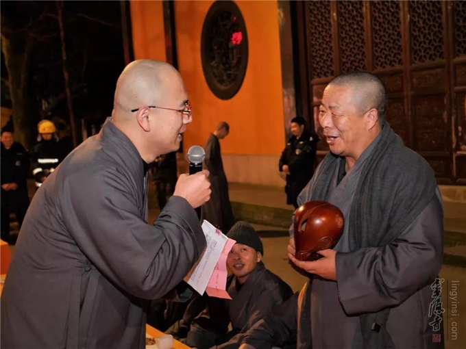 围炉普茶会上,灵隐寺常住表彰了在弘法利生、文化建设、慈善公益、对外交流等方面做出突出贡献的先进个人,勉励大众团结发心,精进勇猛,在各自的岗位上践行人间佛教思想,为佛教事业的发展谱写新的篇章!