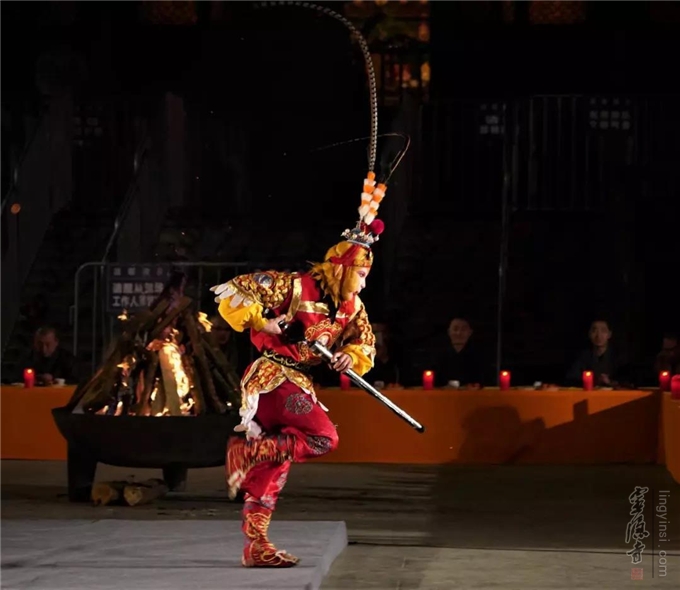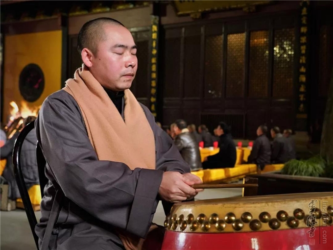 围炉普茶会上,寺院常住法师以击鼓传鱼的方式,共愿吉祥。