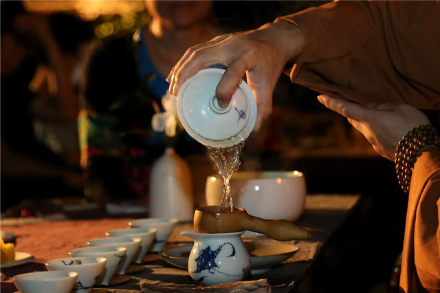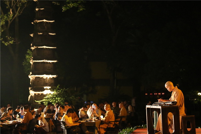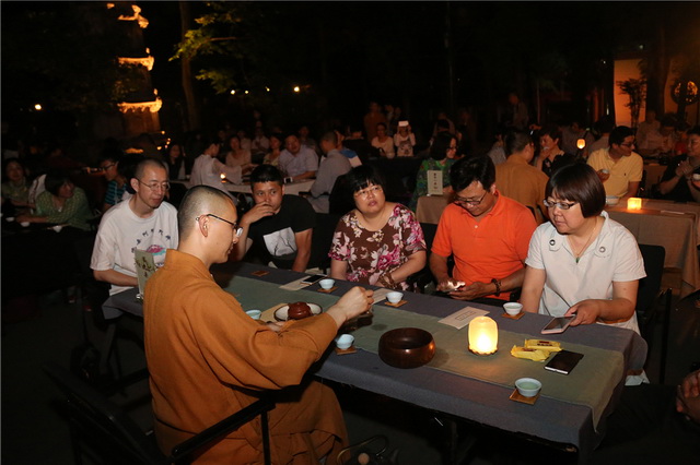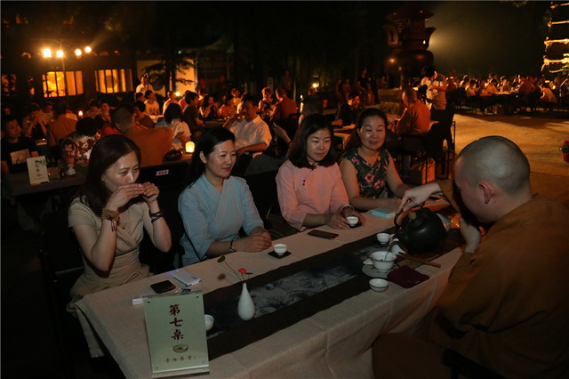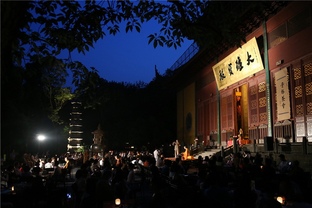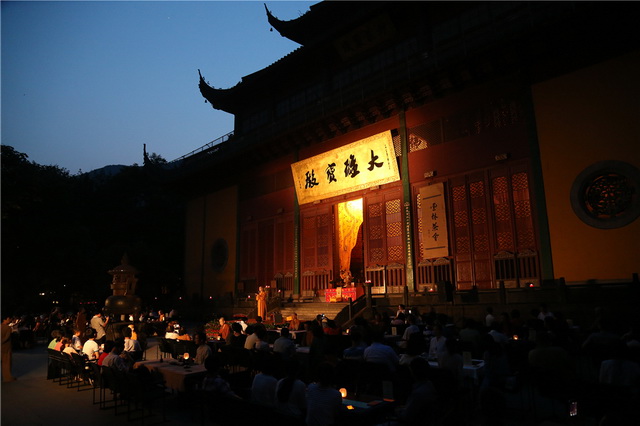 6月12日晚,一年一度的春季"云林茶会"在灵隐寺大雄宝殿前举行,社会各界嘉宾茶友、大德护法、善信居士两百多人于月华与桂香中听古乐,品禅茶,与法师们同席谈禅论道。