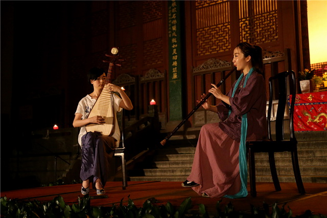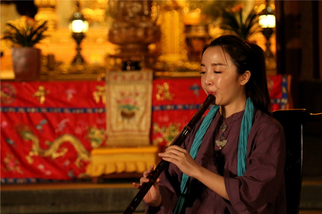 禅茶供佛之后,法师和居士们发心为现场嘉宾供养琴艺与管乐表演。在千年古刹灵隐寺,聆听这天籁般的古乐,所有的喧嚣与烦扰渐行渐远。