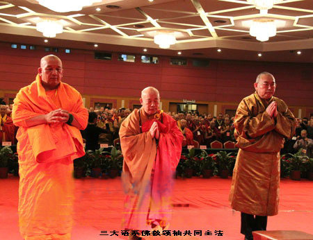 在开幕式开始前,还举行了由三大语系佛教领袖共同主法的"祈祷国泰民安、世界和平法会。"