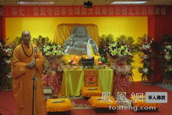 迎奉法会由中国佛教协会教务部宏度法师、长顺法师和中国佛教协会常务理事、雪窦寺方丈怡藏法师主法。