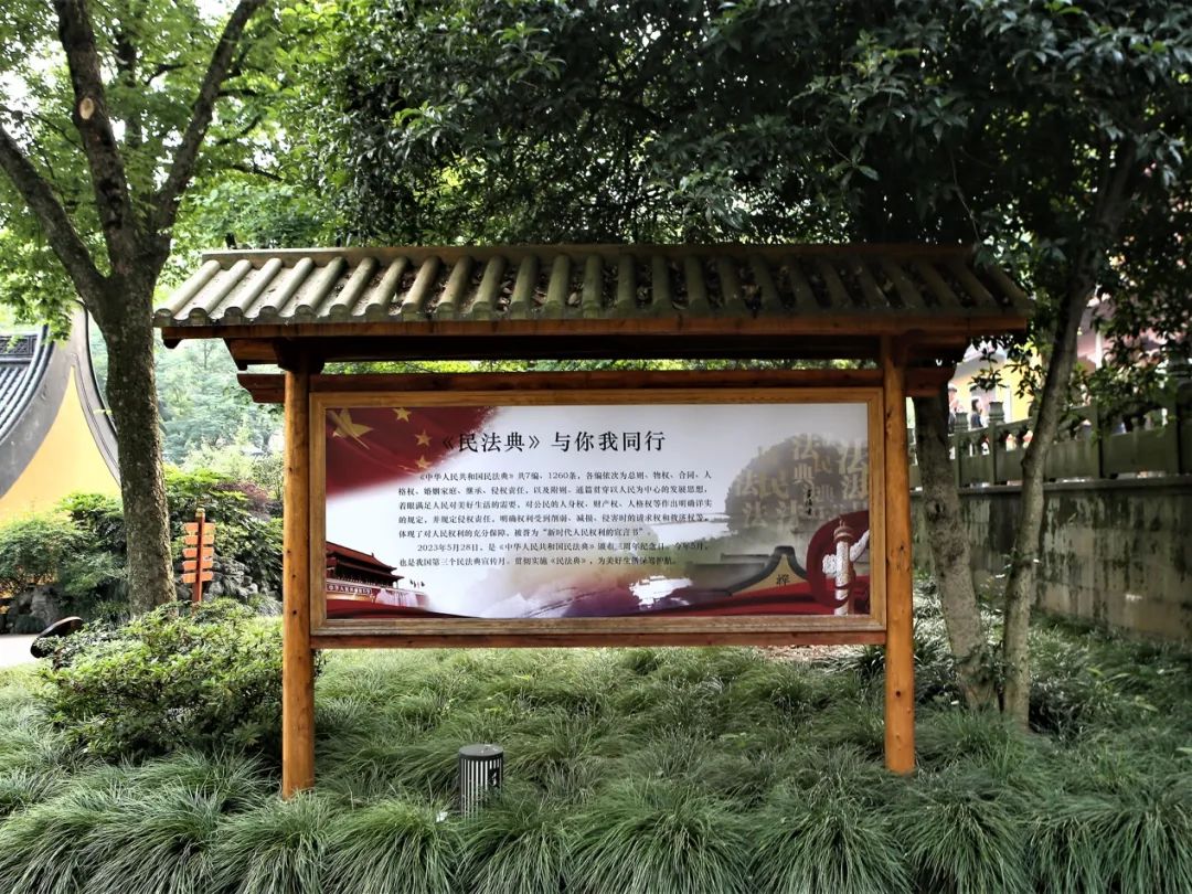 2022年,杭州灵隐寺作为宗教界法治宣传教育典型示范单位,成功入选“杭州市法治宣传教育基地”名单。此次“民法典宣传月”,灵隐寺借助线上线下平台,以丰富多样的内容与形式开展《民法典》的宣传和学习,包括在寺院举办“美好生活·民法典相伴”主题宣讲活动,推动民法典进堂口、入人心,在寺院进口电子屏、出口通道设立《民法典与生活同行》宣传展板,在广大游客中营造学习《民法典》、运用《民法典》、崇尚《民法典》的氛围,利用寺院的网站、微信公众号、抖音号、微博等平台,宣传《民法典》以及相关学习活动,在志工和信教群众中宣讲《民法典》,发放《民法典》读本等。