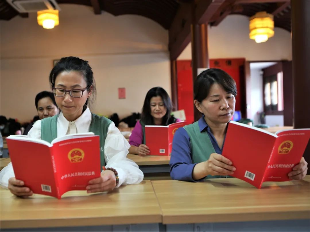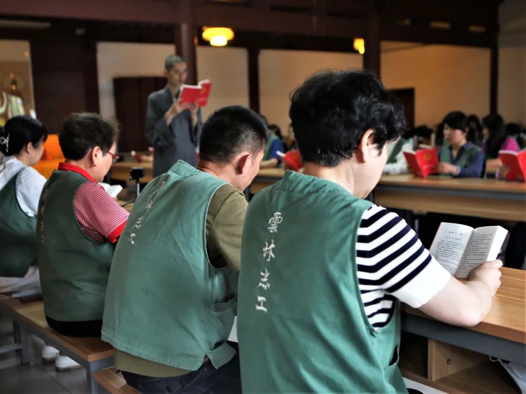 5月27日上午,杭州灵隐寺宣传学习《中华人民共和国民法典》,灵隐寺能量法师为云林志工发放法典读本并带领志工们共同学习《民法典》。