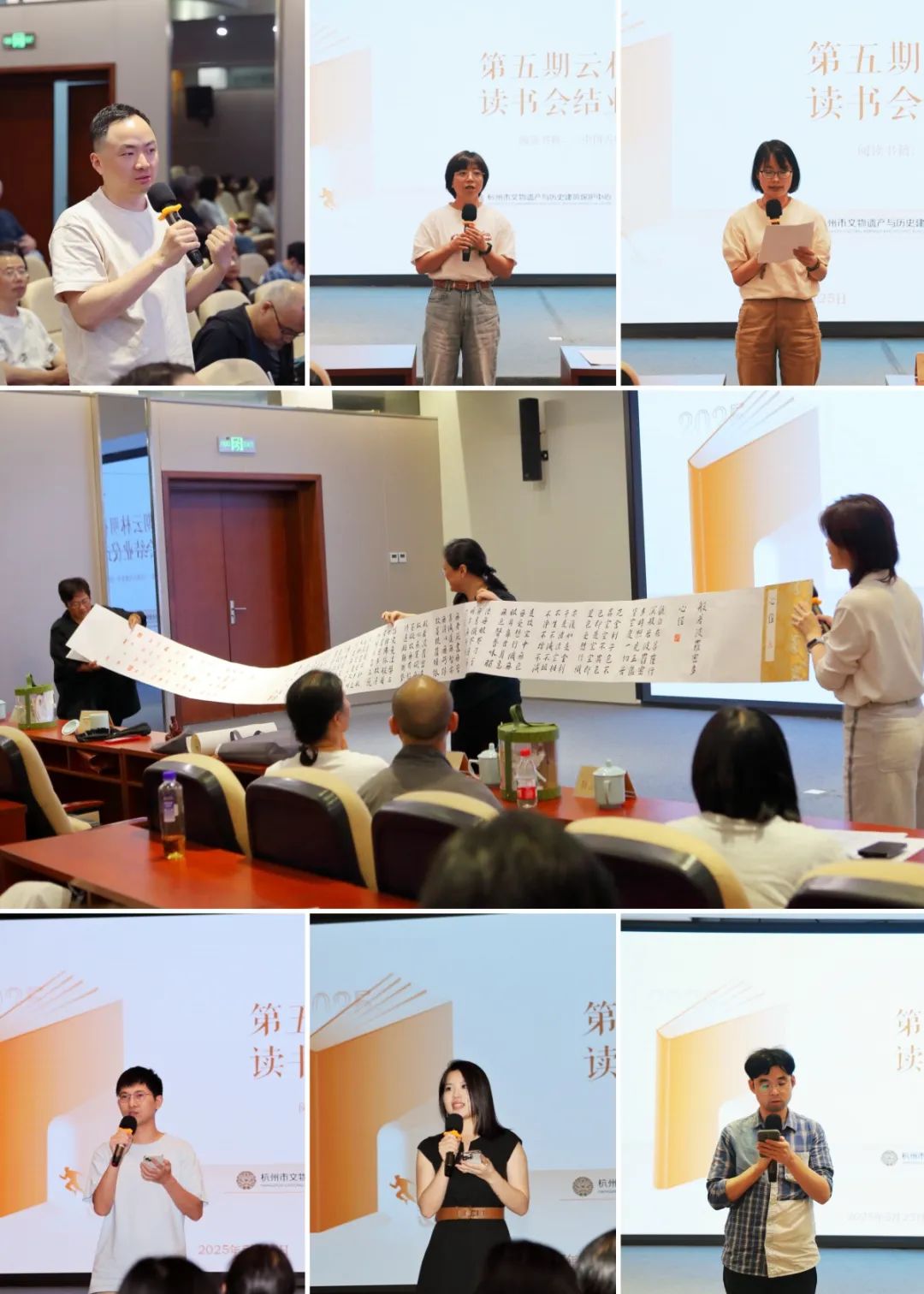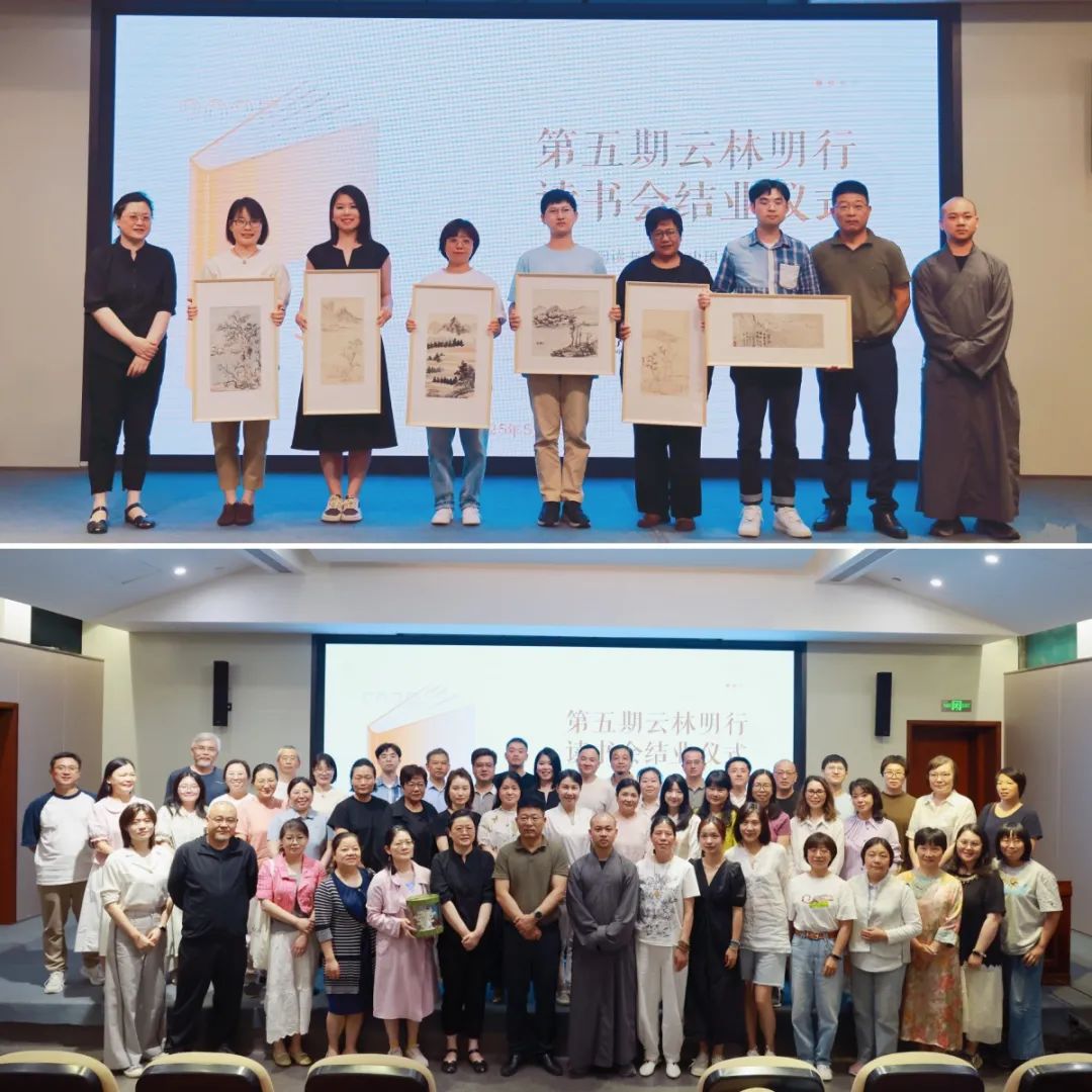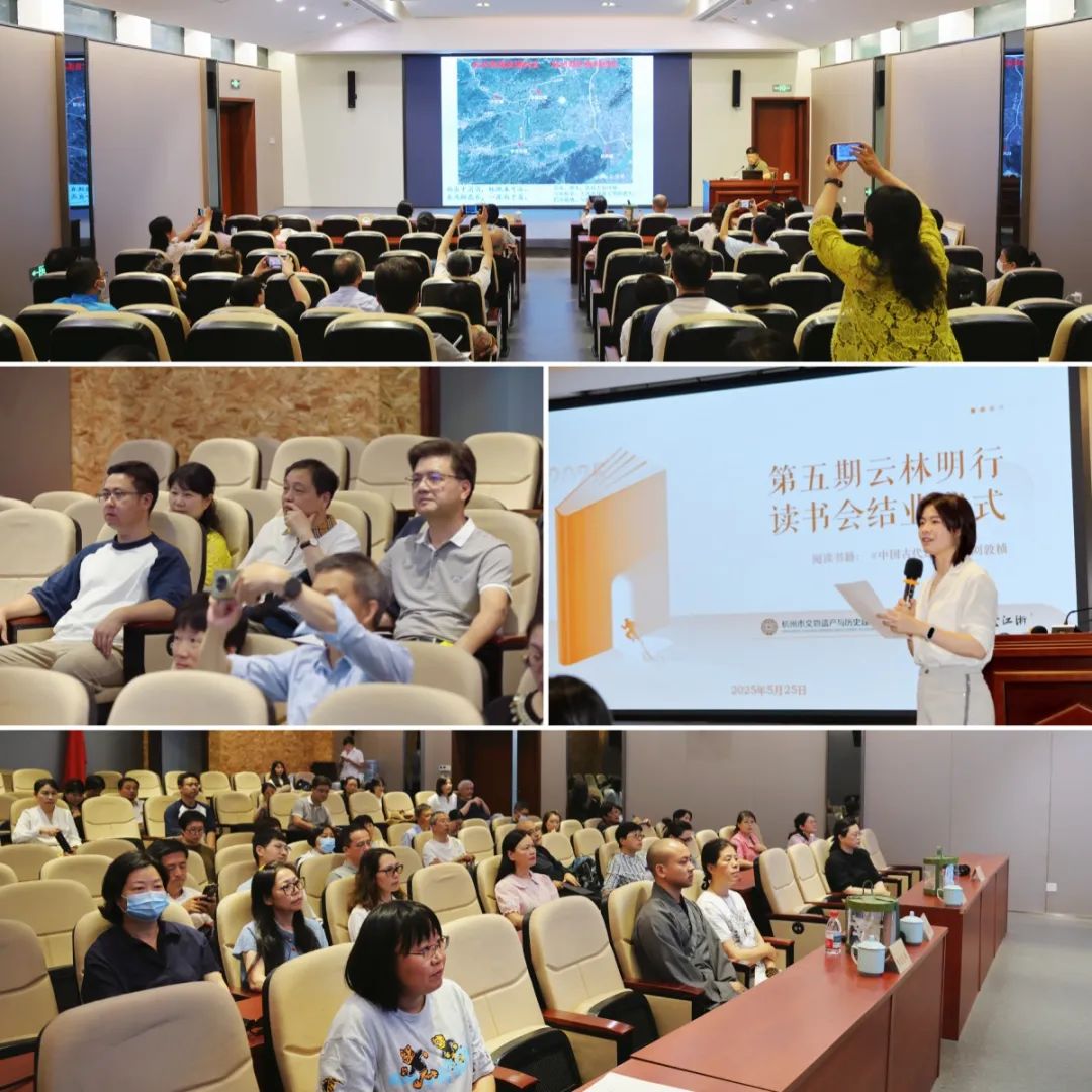 5月25日下午,由浙江云林书院、杭州市文物遗产与历史建筑保护中心共同主办的第五期“云林明行读书会”结业仪式在杭州博物馆报告厅举行。杭州市文物遗产与历史建筑保护中心主任金霄航、宣教信息部颜珏,浙江云林书院智法法师、朱素英老师,本期读书会导读老师叶菁,60余位读书会成员,以及文保360志愿者共同出席,为历时一年的古建阅读之旅画上圆满句号。