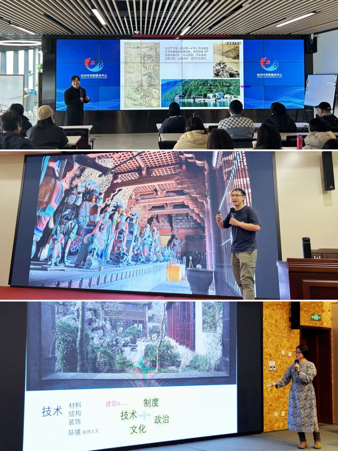 活动伊始,金霄航主任以《杭州古建与城市发展变迁》为主题,分别从城市、建筑发展变化的宏观角度和杭州本土古建现状的微观角度,串联起杭州从钱塘小县到现代都市的演变脉络,并表示读书会理论与实践结合的模式,为公众参与文保提供了创新路径。