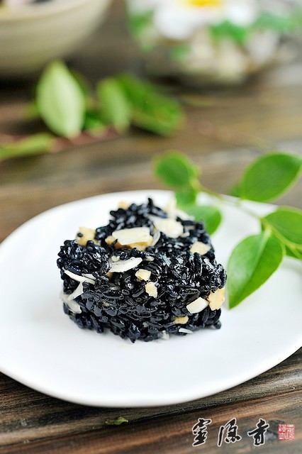 加了坚果的乌米饭里透着椰子片和核桃的香味,很好吃。