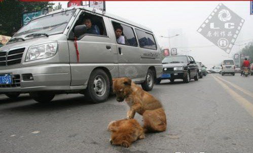 他发现躺在地上的小狗已经受伤,无法动弹,脸上有血迹。大狗显然是来救它的,一会儿"敌视"地看看过往行人,一会儿看看同伴。司机们可能也被感动了,过往车辆没有鸣笛的,他们放慢速度,缓缓绕过小狗。"那一刻我被感动了,拿出数码相机拍 摄。当我走近小狗拍照的时候,大狗朝我‘呜呜’直叫,很凶。我在离他们五六米远的地方拍照。在拍照过程中,我一直盯着大狗的眼睛观察,那种看同伴的眼神, 那种张望四周的表情,分明是一位母亲看到自己心爱的孩子遭到伤害时,既仇视又心疼的样子,真的像人一样,很逼真很感人。当时我流泪了,连续拍了100多 张。"高先生对记者说。
