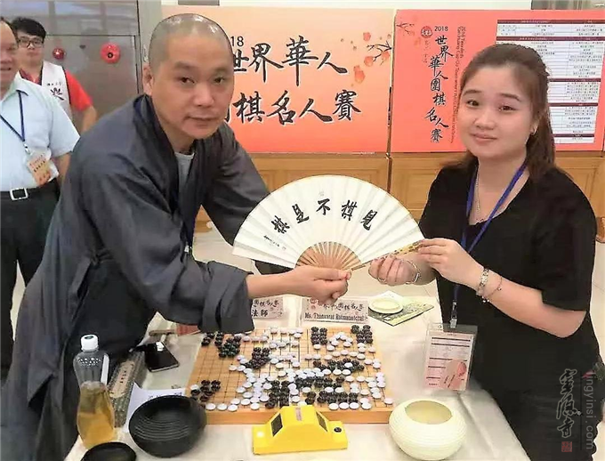 在第二十届炎黄杯世界华人围棋名人赛闭幕式上,觉亮法师诵偈一首,赠送在座棋友嘉宾,赢得满堂赞扬,喝彩掌声不断!