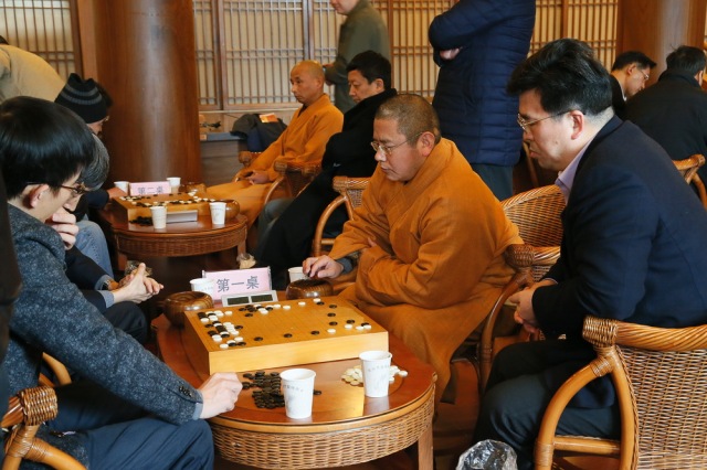 随后,选手们恬然入座,开始了在棋盘道场里的交流与禅悟,体会"见棋不是棋"的僧家奥义。