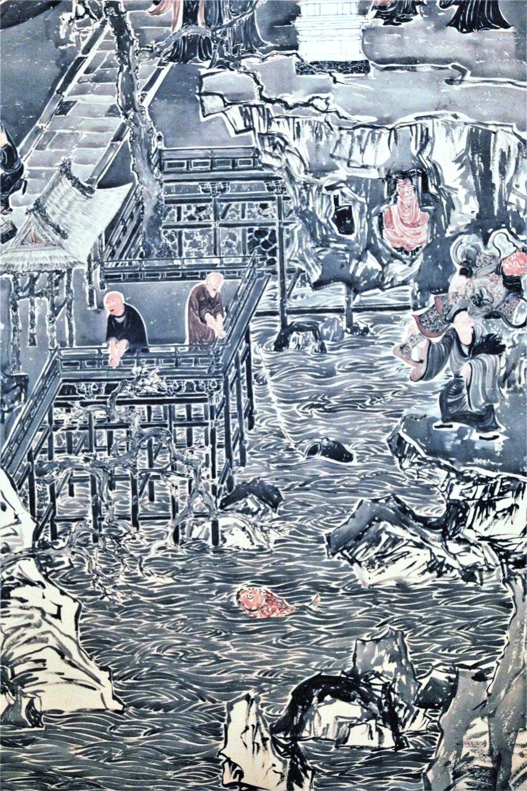 济公背起韦陀像走出山门(壁画局部)