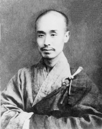 弘一放下经书,然而却又随即坐了下来。他镇定了一下自己的心绪,向那个禀报的师父说,烦请再说一声。就说李叔同已经死了,现在只有弘一演音。弘一演音 不见一切家人。弘一说着,捧起那本《严华经》继续地朗读起来。过了一会儿,从大殿外传来樱子清晰的哭声,弘一把朗读的声音更加大了几分。那客堂师父分明看 见一行泪珠,沿着弘一的脸颊滚落下来。