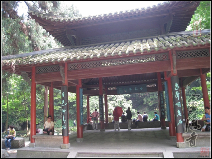 当然,冷泉亭的佳妙之处并非仅此而已,想像一下:四周山顶树荫浓郁,亭亭如盖,一堵堵岩石似若屏风,涧水一直漫到亭子的右阶上,那情境的确教人心驰神往。在《冷泉亭记》中白居易写下了自已真切的体会: 每当春暖花开,山谷间草香扑鼻,林木繁盛,人居亭中吸收大自然赐与神灵之气,吐故纳新,血脉流畅,心境非常恬和。而到了盛夏酷暑之地,如果晚上登临此亭,则四周清水萦绕,波平如镜,晚风从山谷间徐徐吹来,清凉爽身,可以把酒给人带来的醉意驱除殆尽,使人心快意畅,精神振奋。坐在亭子里。可以脱了鞋袜坐在石阶上把脚伸入水中嬉耍;如有雅兴。不妨持一根钓竿,垂钓于其上,那粹冷柔滑的涧水,此时缓缓流动,真是妙不可言。在这样一个宛若仙境的地方,不管是世俗之入还是出家僧人,同样会洗净纤尘,忘却一切烦恼因缘。