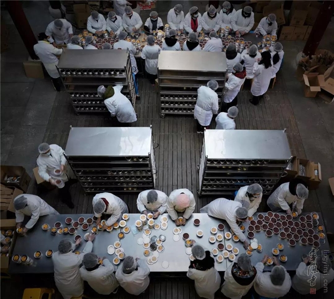腊八粥熬制期间,每天有数以百志工,轮班参与腊八粥的食材挑选和准备,敲白果、挑红枣、筛米、挑豆子,寺院的法师更是忙碌在煮制的现场,保证一碗寺院腊八粥的香糯可口。
