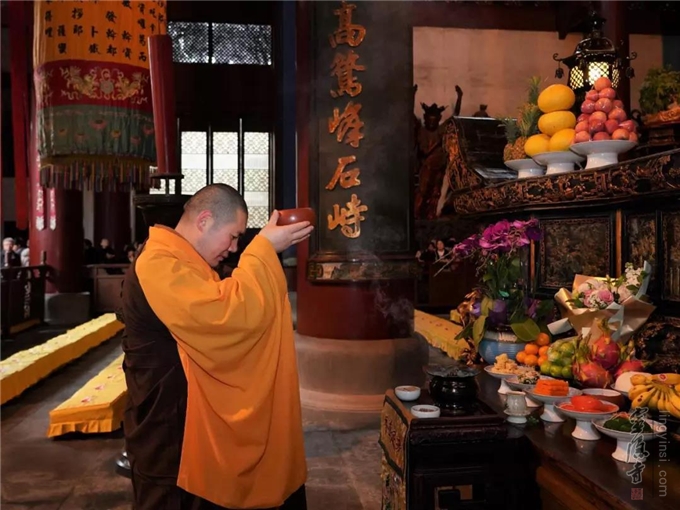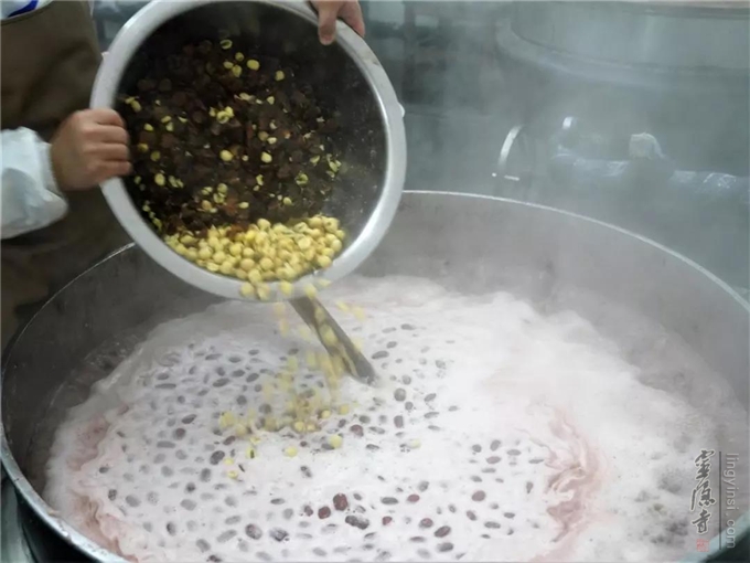 杭州灵隐寺在开始熬制腊八粥时,都要举行开煮洒净仪式,然后将第一碗粥供奉于佛殿。