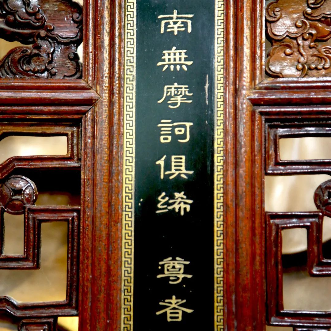 尊者法相所现为安然静坐,右手握法器,左手枕经册,翘眉亮目,体态健朗,神态刚中带柔,极为宽厚。尊者法相庄严,志坚心诚,善思多智,修行悟道。
