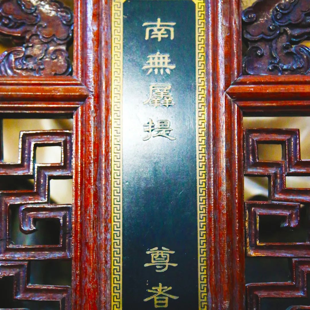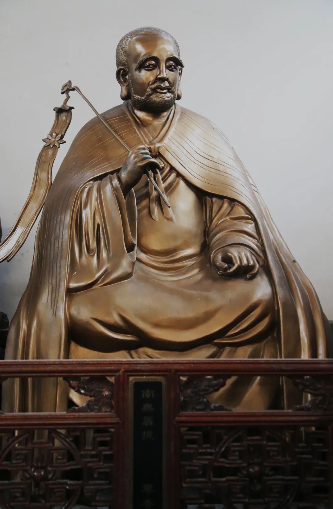 尊者法相所现为端然静坐,身披挂络,右手执幡,左手结印,慈眉善目,神气清净大气。尊者大慈大悲,能忍受屈辱以感化众生。
