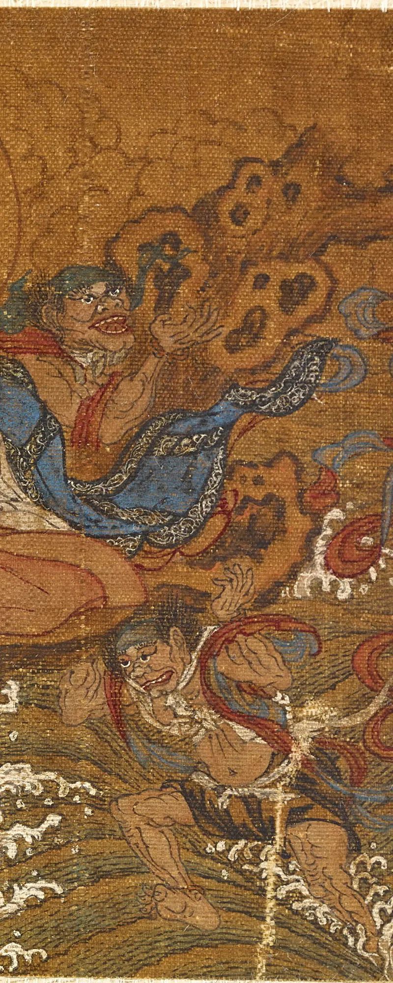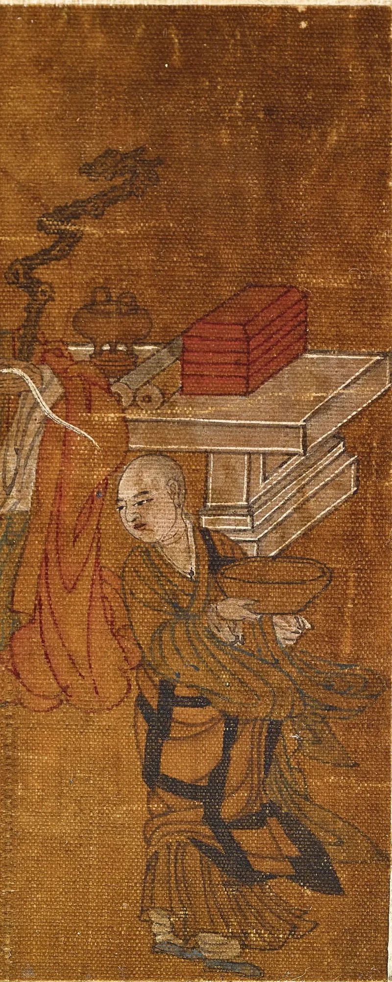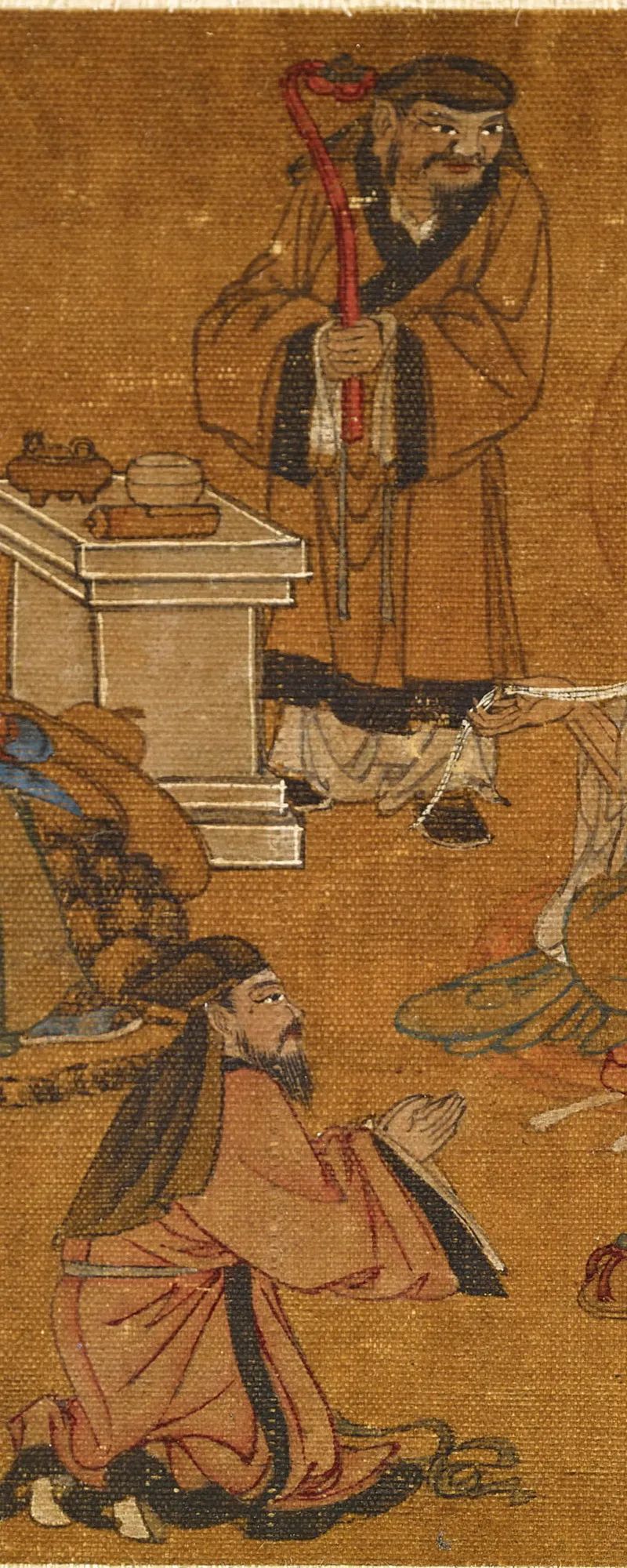 崔子忠,明画家,初名丹,字开予:改名子忠,字道母,号北海,青蚓(一作青引),梁清标《画谱序》亦作“道毋”,约生于1574年,卒于1644年。原籍北海(山东省莱阳市)人,后移居顺天(即北京)。其好友梁清标在其所辑刻崔子忠所绘《息影轩画谱》序中称崔子忠“天启时为(顺天)府庠生,当生于万历年间”,又说他“甲申之变,走入土室而死”。崔子忠可以说是一位爱国画家,居住于顺天府(今北京),曾经师从董其昌。在农民起义军李自成的队伍攻入北京后,躲在自己的密室当中,后面因缺少粮食而饿死。善画人物,仕女,题材多佛画及传说故事,取法唐宋,颇具古意。他在当时与陈洪绶齐名,有“南陈北崔”之称。