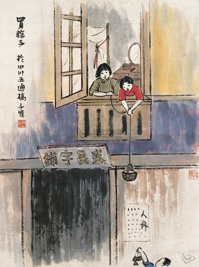 我写民间生活的漫画中,门上往往有一个王字。读者都不解其意,有的以为这门里的人家姓王。我在重庆的画展中,有人重订一幅这类的画,特别关照会场司订件的人,说:“请他画时在门上写一个李字,因为我姓李。”这买画人把画当作自己家里看,其欣赏态度可谓特殊之极!而我在门上写王字,也可说是悖事之至!因为这门上的王字原是端午日正午用雄黄酒写上的。