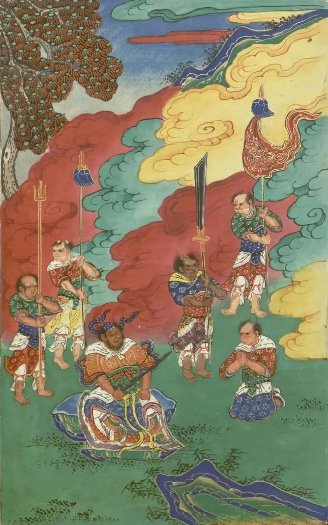 这时魔王已是嗔火内烧,哪里肯听儿子的劝告,当即召集四种精锐兵队,所谓象兵马兵车兵步兵,其数百千万亿,个个奇形怪状,面目狰狞,可畏可怖,各持种种兵器,凶狠异常,由魔王亲自率领,浩浩荡荡向菩提场进军。