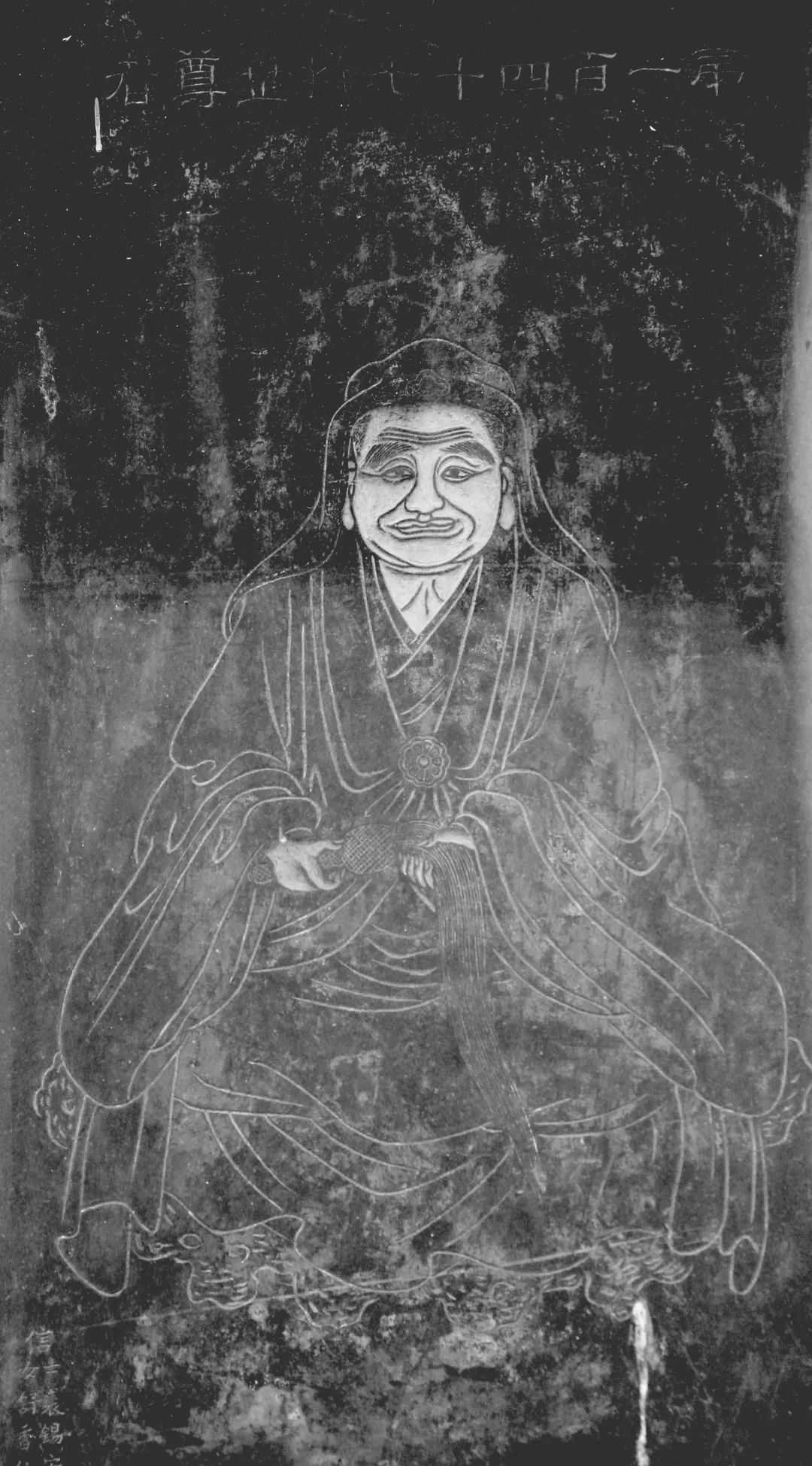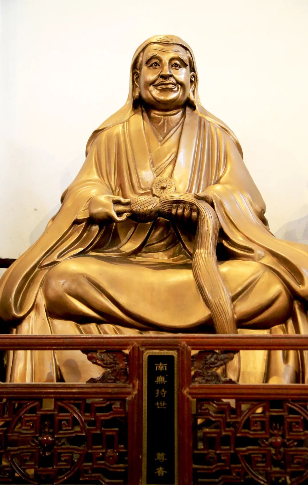 尊者法相为安然静坐,慈和面善,双手执拂子。尊者乐助众生,慈悲厚道,宽以待人。