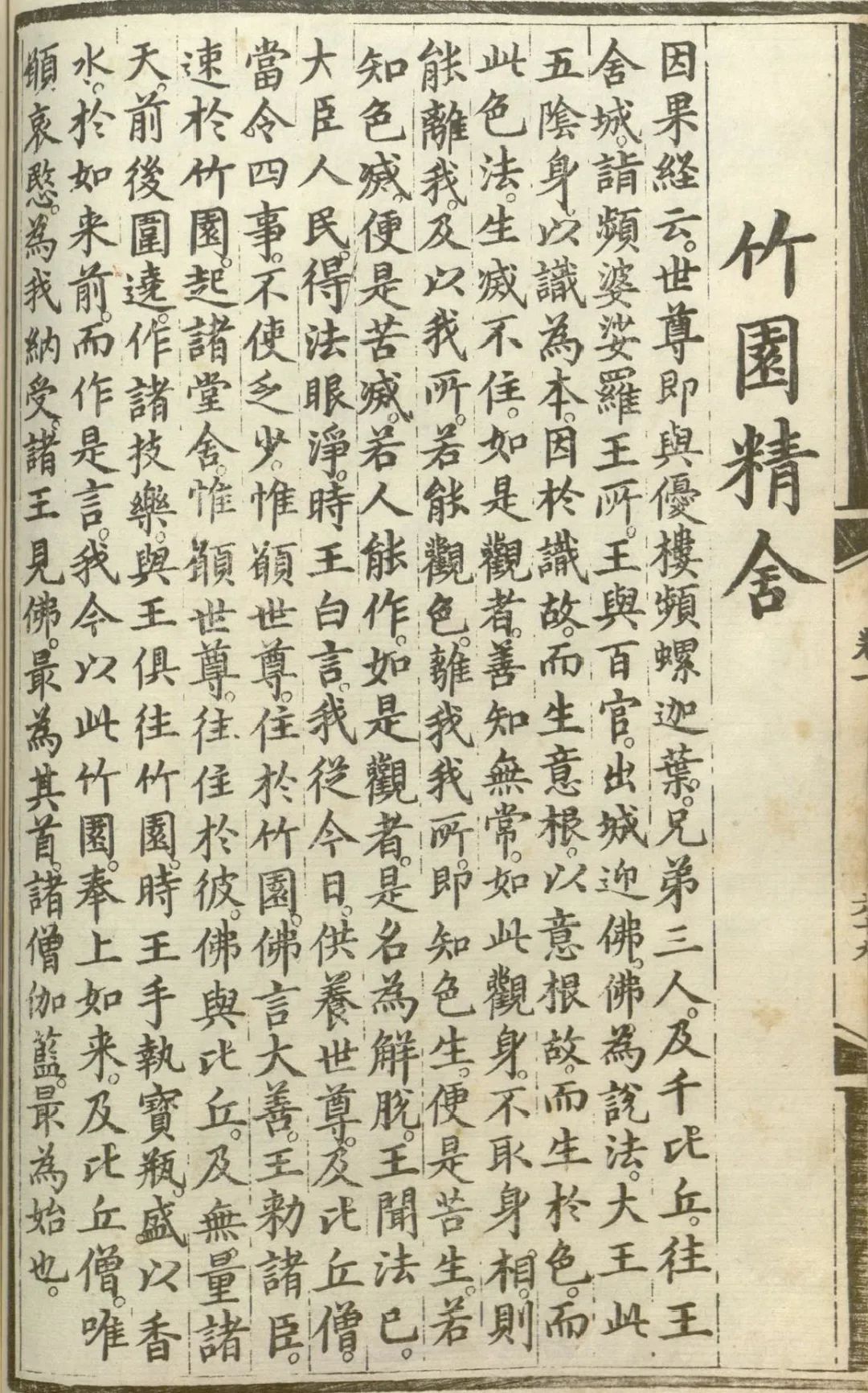 王勅诸臣。速于竹园起诸堂舍。惟愿世尊。往住于彼。佛与比丘。及无量诸天。前后围绕。作诸伎乐。与王俱往竹园。
