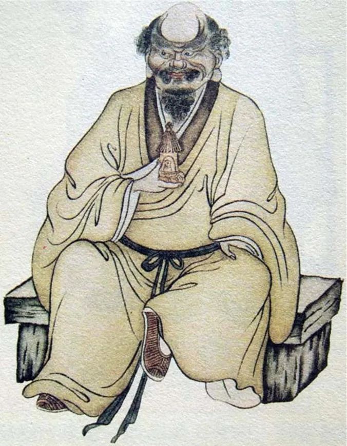 尊者法相所现为左手自然置于膝上,右手于胸前托法器,长须卷曲,额如日轮,目光旁掠,面露悦色。尊者德行高深,心明身正。
