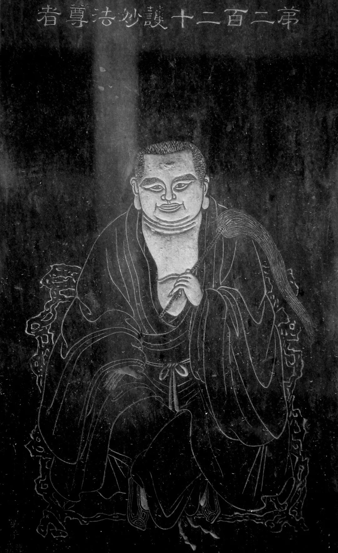 五百罗汉第贰佰贰拾尊护妙法尊者,又称隋远、小远、大远、北远。俗姓李,敦煌人,是生活在北朝、隋朝的著名高僧。他精通佛法,知识渊博,尤其擅长解读佛经,被世人视为佛经注疏家的泰斗。