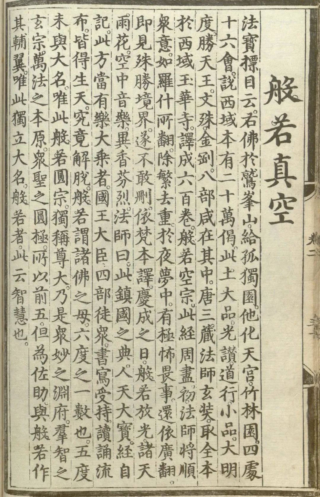 唐三藏法师玄奘。取全本于西域。玉华寺译成六百卷。般若空宗。此经周尽。初法师将顺众意。如罗什所翻。除繁去重。于夜梦中。有极怖畏事。还依广翻。即见殊胜境界。遂不敢删。依梵本译。庆成之日。般若放光。诸天雨花。空中音乐。异香芬烈。法师曰。此镇国之典。人天大宝。