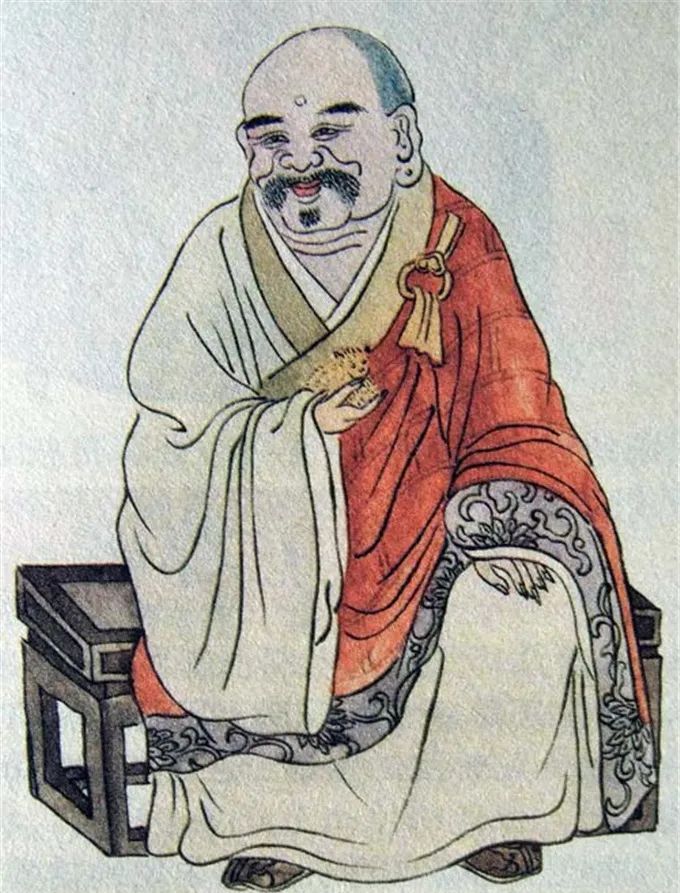 尊者法相所现为正面而坐,面露笑容,右手托灵兽,左手结印。