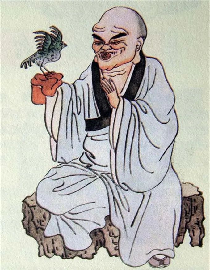 尊者法相所现为正面而坐,面露笑容,左手结印,右手落一灵鸟。