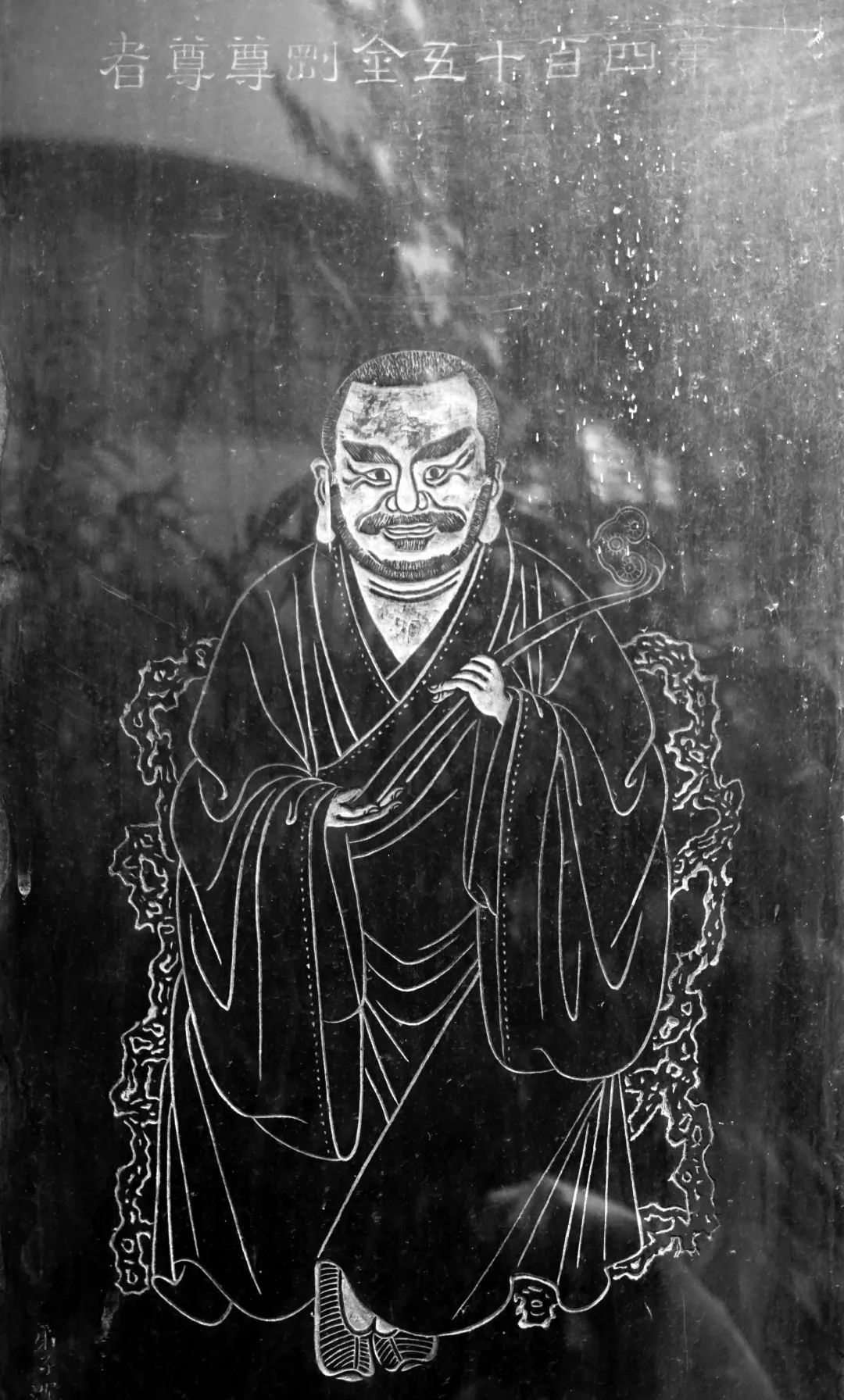 五百罗汉第肆佰壹拾伍尊金刚尊尊者,即普贤菩萨。普贤,音译三曼多跋陀罗菩萨,又作遍吉菩萨。我国佛教四大菩萨之一。与文殊菩萨为释迦如来之胁士。即文殊驾狮子侍如来之左侧,普贤乘白象侍右侧。若以此二胁士表法,文殊师利显智、慧、证,普贤显理、定、行,共诠本尊如来理智、定慧、行证之完备圆满。文殊、普贤共为一切菩萨之上首,常助成宣扬如来之化导摄益。以此菩萨之身相及功德遍一切处,纯一妙善,故称普贤。