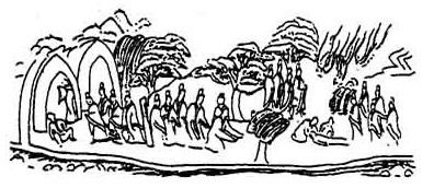 时王便前欲拔出箭。箭深不出。百鸟禽兽四面云集。皆大号呼动一山中。王益怖懅支节皆动。睒语王言。非王之过。自我宿罪缘对所致。我不惜身。但念我盲父母耳。年既衰老两目复盲。一旦无我亦当终没无瞻视者。以是之故自懊恼耳。当尔之时。诸天龙神皆为肃动。王又重言。我宁自入地狱之中自受此罪。使睒身活。长跪向睒悔过陈言。若子终没我不还国。便住山中供养卿盲父母如卿在时。勿以为忧。诸天龙神皆当证知。不负此誓。睒闻王誓虽被毒箭。心喜意悦虽死不恨。以我父母累王供养。王当罪灭得福无量。王曰。卿当语我父母之处。及子未死吾欲知之。睒即指示从是径去。去此不远当见草屋。我之父母在其中止。王徐徐往勿令父母惊动怖懅。以善方便解语其意。王当为我上白父母。无常今至当就后世。我不惜命念盲父母年既衰老两目复盲。一旦无我无所依仰。以是懊恼自酷毒耳。我死自分宿罪所致无可得脱。今自忏悔。从无数劫有身以来所行众恶于此罪灭。愿与父母世世相值不相远离。当令父母终保年寿勿有忧患。天龙鬼神常随护助灾害消灭。所欲应意无为自然。王将数人诣父母所。王去之后睒奄死矣。百鸟禽兽四面云集。皆大号呼绕睒尸上舐是胸血。盲父母闻此音声益怖彷徉而住。王行驶疾触动草木肃肃有声。父母惊言。此是何人非我子行。王言。我是迦夷国王。闻盲道人在山学道故来供养。盲父母言。枉屈大王来相慰劳远临草野。王当疲极体安隐不。宫殿夫人太子官属皆安善不。风雨和调五谷丰不。邻国人民不相侵害耶。王答道人。得蒙尊恩常自平安。又更问讯盲父母。在此山中劳大勤苦。树木之间甚难为止。自安隐不。盲父母言。蒙大王恩常自安隐。我有孝子字名曰睒。常取果蓏泉水无乏。我有草席王可就坐。果蓏可食。睒行取水。正尔来还。王闻盲父母言。又大伤心涕泣其言。我罪实重入山射猎。遥见水边有诸群鹿。引弓射之。箭误中睒道人子睒已被毒箭其痛甚酷。今故自来语道人耳。父母闻之举身自扑。如太山崩地为大动。号哭仰天自陈诉言。我子睒者。天下至孝无有能过。蹈地常恐地痛。有何罪故而射杀之。向者大风卒起吹折树木。百鸟悲鸣皆大号呼动一山中。我在山中二十余年。未曾有此灾异之变。而我子睒取水不还恐当有故。诸神皆惊肃肃而动。母便涕哭不肯复止。父言且止。人生世间无有不死。无常对至不可得却。但问王。睒为射何许今为死活。王以睒语向父母说。其盲父母闻王此语又大感绝。一旦无子俱亦当死。