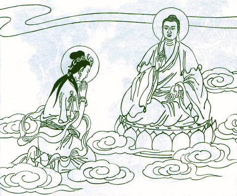 尔时地藏菩萨摩诃萨白佛言。世尊。我承佛如来威神力故。遍百千万亿世界。分是身形救拔一切业报众生。若非如来大慈力故。即不能作如是变化。我今又蒙佛付嘱。至阿逸多成佛已来。六道众生遣令度脱。唯然世尊愿不有虑。尔时佛告地藏菩萨。一切众生未解脱者。性识无定。恶习结业善习结果。为善为恶逐境而生。轮转五道暂无休息。动经尘劫迷惑障难。如鱼游网将是长流。脱入暂出又复遭网。以是等辈吾当忧念。汝既毕是往愿。累劫重誓广度罪辈。吾复何虑。说是语时。会中有一菩萨摩诃萨。名定自在王。白佛言。世尊。地藏菩萨。累劫已来各发何愿。今蒙世尊殷勤赞叹。唯愿世尊略而说之。尔时世尊告定自在王菩萨。谛听谛听善思念之。吾当为汝分别解说。乃往过去无量阿僧祇那由他不可说劫。尔时有佛号一切智成就如来应供正遍知明行足善逝世间解无上士调御丈夫天人师佛世尊。其佛寿命六万劫。未出家时为小国王。与一邻国王为友。同行十善饶益众生。其邻国内所有人民多造众恶。二王议计广设方便。一王发愿早成佛道。当度是辈令使无余。一王发愿若不先度罪苦。令是安乐得至菩提。我终未愿成佛。佛告定自在王菩萨。一王发愿早成佛者。即一切智成就如来是。一王发愿永度罪苦众生。未愿成佛者即地藏菩萨是。复于过去无量阿僧祇劫。有佛出世名清净莲华目如来。其佛寿命四十劫。像法之中有一罗汉福度众生。因次教化。遇一女人字曰光目。设食供养。罗汉问之欲愿何等。光目答言。我以母亡之日资福救拔。未知我母生处何趣。罗汉愍之为入定观。见光目女母堕在恶趣受极大苦。罗汉问光目言。汝母在生作何行业。今在恶趣受极大苦。光目答言。我母所习。唯好食啖鱼鳖之属。所食鱼鳖多食其子。或炒或煮恣情食啖。计其命数千万复倍。尊者慈愍如何哀救。罗汉愍之为作方便。劝光目言。汝可志诚念清净莲华目如来兼塑画形像存亡获报。光目闻已即舍所爱。寻画佛像而供养之。复恭敬心悲泣瞻礼。忽于夜后梦见佛身。金色晃耀如须弥山。放大光明而告光目。汝母不久当生汝家。才觉饥寒即当言说。其后家内婢生一子。未满三日而乃言说。稽首悲泣告于光目。生死业缘果报自受。吾是汝母。久处暗冥。自别汝来。累堕大地狱。蒙汝福力方得受生。为下贱人又复短命。寿年十三更落恶道。汝有何计令吾脱免。光目闻说知母无疑。哽咽悲啼而白婢子。既是我母合知本罪。作何行业堕于恶道。婢子答言。以杀害毁骂二业受报。若非蒙福救拔吾难。以是业故未合解脱。光目问言。地狱罪报其事云何。婢子答言。罪苦之事不忍称说。百千岁中卒白难竟。光目闻已啼泪号泣。而白空界。愿我之母永脱地狱。毕十三岁更无重罪及历恶道。十方诸佛慈哀愍我。听我为母所发广大誓愿。若得我母永离三涂及斯下贱。乃至女人之身永劫不受者。愿我自今日后。对清净莲华目如来像前。却后百千万亿劫中。应有世界所有地狱。及三恶道诸罪苦众生。誓愿救拔令离地狱恶趣畜生饿鬼等。如是罪报等人尽成佛竟。我然后方成正觉。发誓愿已。具闻清净莲华目如来。而告之曰。光目。汝大慈愍善能为母发如是大愿。吾观汝母十三岁毕舍此报已生为梵志寿年百岁。过是报后当生无忧国土。寿命不可计劫。后成佛果广度人天数如恒河沙。佛告定自在王。尔时罗汉福度光目者即无尽意菩萨是。光目母者即解脱菩萨是。光目女者即地藏菩萨是。过去久远劫中如是慈愍。发恒河沙愿广度众生。未来世中若有男子女人。不行善者。行恶者。乃至不信因果者。邪淫妄语者。两舌恶口者。毁谤大乘者。如是诸业众生必堕恶趣。若遇善知识劝。令一弹指间。归依地藏菩萨。是诸众生即得解脱三恶道报。若能志心归敬及瞻礼赞叹。香华衣服种种珍宝或复饮食。如是奉事者。未来百千万亿劫中。常在诸天受胜妙乐。若天福尽下生人间。犹百千劫常为帝王。能忆宿命因果本末。定自在王。如是地藏菩萨。有如此不可思议大威神力广利众生。汝等诸菩萨当记是经广宣流布。定自在王白佛言。世尊愿不有虑。我等千万亿菩萨摩诃萨。必能承佛威神广演是经。于阎浮提利益众生。定自在王菩萨白世尊已。合掌恭敬作礼而退。尔时四方天王俱从座起。合掌恭敬白佛言。世尊。地藏菩萨于久远劫来。发如是大愿。云何至今犹度未绝。更发广大誓言。唯愿世尊为我等说。佛告四天王。善哉善哉吾今为汝及未来现在天人众等广利益故。说地藏菩萨于娑婆世界阎浮提内生死道中。慈哀救拔度脱一切罪苦众生方便之事。四天王言。唯然世尊愿乐欲闻。佛告四天王。地藏菩萨久远劫来。迄至于今度脱众生犹未毕愿。慈愍此世罪苦众生。复观未来无量劫中因蔓不断。以是之故又发重愿。如是菩萨于娑婆世界阎浮提中。百千万亿方便而为教化。四天王。地藏菩萨若遇杀生者说宿殃短命报。若遇窃盗者说贫穷苦楚报。若遇邪淫者说雀鸽鸳鸯报。若遇恶口者说眷属斗诤报。若遇毁谤者说无舌疮口报。若遇嗔恚者说丑陋癃残报。若遇悭吝者说所求违愿报。若遇饮食无度者说饥渴咽病报。若遇畋猎恣情者说惊狂丧命报。若遇悖逆父母者说天地灾杀报。若遇烧山林木者说狂迷取死报。若遇前后父母恶毒者说返生鞭挞现受报。若遇网
