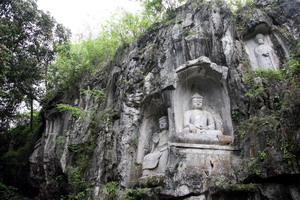 飞来峰造像位于灵隐寺前的飞来峰岩壁,峰高