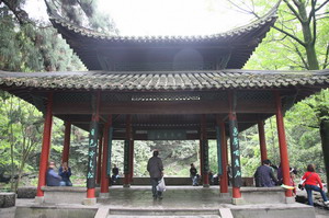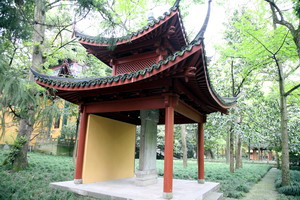在灵隐寺与天竺分道处,黄墙黛瓦、古色古香。照壁上题有擘窠大字"咫尺西天",为清代遗存建筑,点示此处旁有灵鹫,前有天竺,都是古印度佛祖坐禅说法之处,即"西天佛国",古人称:"山名天竺,西方即在眼前"。"咫尺西天"为清人留下的点睛之笔。