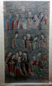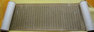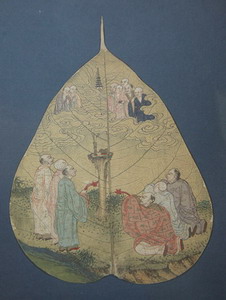 同时展出部分经卷书画等,如敦煌石窟藏经、雷峰塔地宫出土的《陀罗尼经》、乾隆御书"雅宜清致"横条、贝叶经卷、菩提树叶《庄严三宝》绘画、董其昌长卷和《金刚经》,清代九十八高龄竹禅法师所绘《济公像》以及郑板桥、康有为、吴昌硕、潘天寿等书法绘画珍品等,琳琅满目,藏品丰富多彩。现选部分刊登如下: