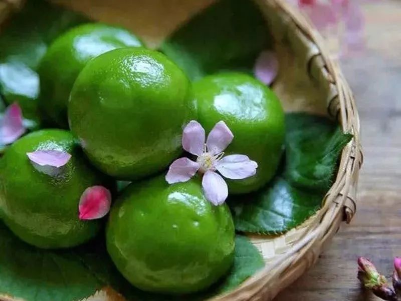 清明时节,江南一带有吃青团子的风俗习惯。青团子油绿如玉,糯韧绵软,清香扑鼻,吃起来甜而不腻。青团子还是江南一带用来祭祀祖先必备食品,正因如此,青团子在江南一带的民间食俗中显得格外重要。