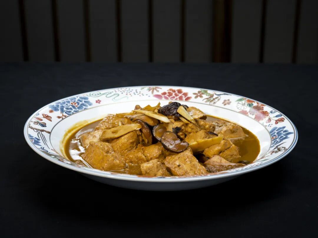 ②起锅热油,将香菇片下锅煸香后,加笋片、姜碎,再加入水和老豆腐,用大火烧开后转小火,加入调配好的酱汁(包括调味酱、生抽、白糖、蘑菇精等)进行慢炖即可。
