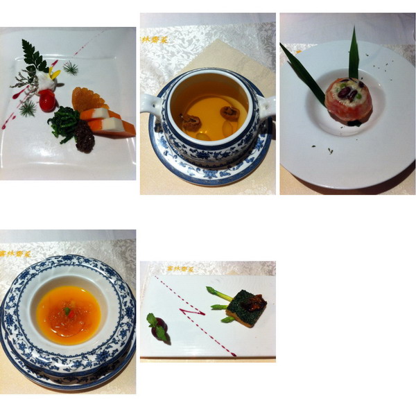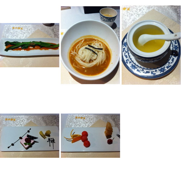 灵隐斋菜馆位于安缦法云酒店内,低调的原木桌椅散发着淡香,桌上的蝴蝶兰在幽暗的灯光下白皙若脂,周围的空气里弥漫着禅意,菜是一道一道上来,都有着素雅的名字,而每一道菜中都有着佛家的寓意,具体悟出了什么?那就要看个人的修行了: