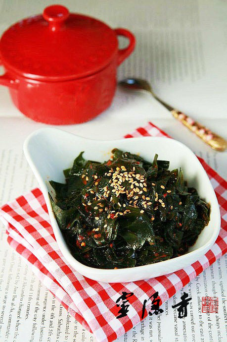 裙带菜,韩国辣椒酱,花椒油,盐,辣椒油,芝麻