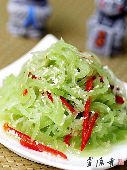 焯烫蔬菜的开水中一定要加一小勺盐里面,这样不仅蔬菜爽脆,而且色绿,凉拌这道菜,调味料一定不能多,只要些许食盐,一点点白糖提鲜即可,芝麻油起到化龙点睛的作用,能激发出莴苣特有的香气来。